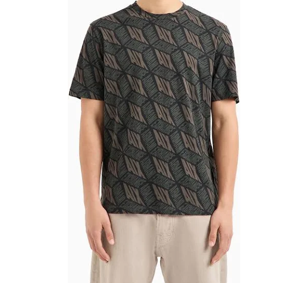 The “crew-neck” refers to the classic round neckline, a timeless and versatile style that suits most people and pairs well with various outerwear. The “logo print” indicates that the t-shirt will feature the ARMANI EXCHANGE brand’s logo prominently displayed. The style and size of the print can vary, but it serves as a clear identifier of the brand.