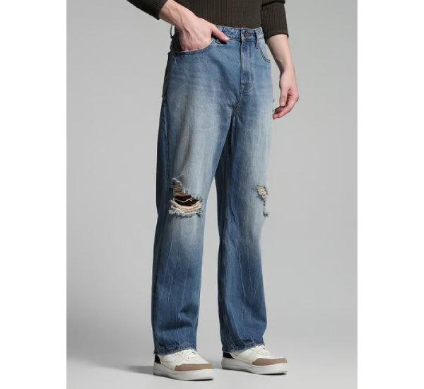 Men Light-Wash Distress Wide Jeans offer a trendy and relaxed style. The “wide jeans” aspect means they have a loose fit through the legs, providing comfort and a casual silhouette. The “light-wash” gives them a lighter blue color, often associated with a more relaxed and worn-in feel. The “distress” detailing typically includes intentional rips, frays, or abrasions, adding an edgy and lived-in look to the jeans.