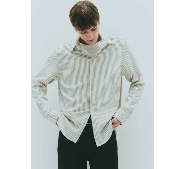 The defining feature of this shirt is its checked pattern. H&M offers various types of checks, from classic gingham and subtle windowpane to bolder buffalo checks or more intricate plaid designs, providing diverse options to suit different personal styles. The checked pattern combined with the textured fabric creates a visually interesting and dynamic look.