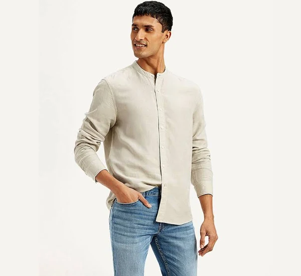 Key design elements include a versatile point collar or a button-down collar for a neat, classic look, and a clean full-button placket. It features full sleeves with adjustable buttoned cuffs that can be effortlessly rolled up for a more relaxed, casual aesthetic. Authentic Levi’s branding, such as a subtle red tab on the chest pocket (if present) or a discreet embroidered logo, typically signifies its genuine heritage and quality.
